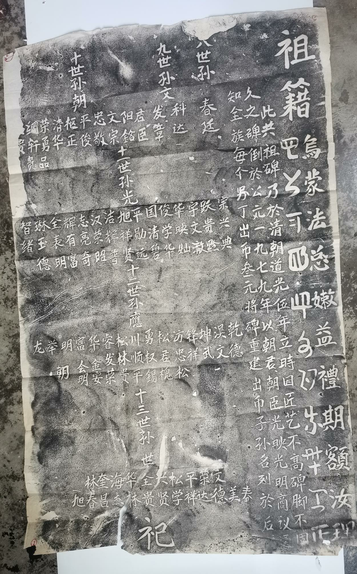 杨氏祖籍墓碑刻拓片