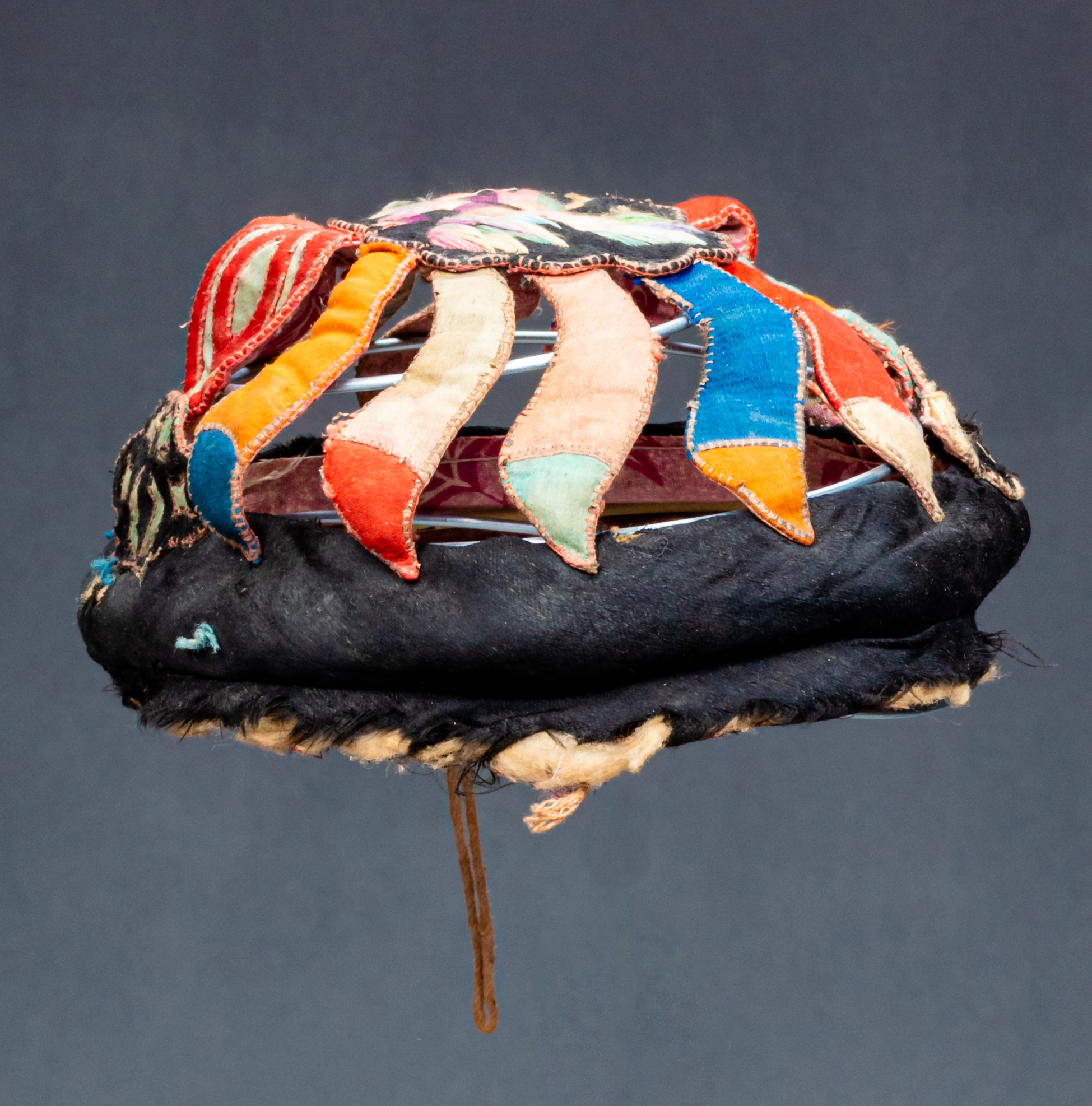 空花剪贴刺绣凤纹童帽