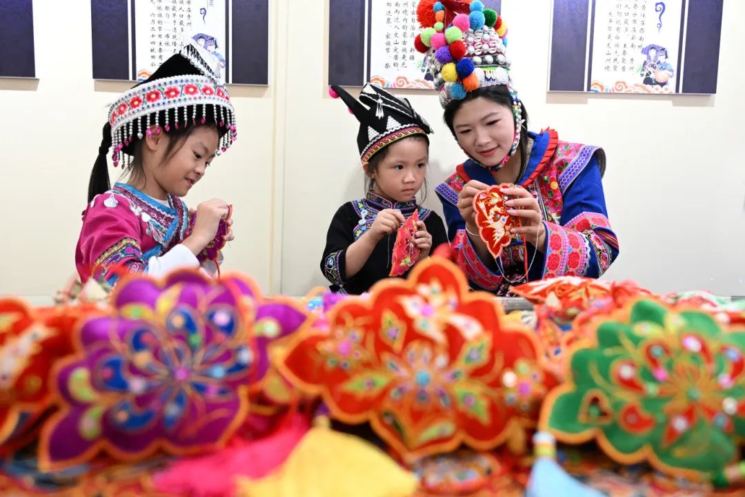 ▲5月31日,在云南省文山市卧龙街道文新街社区,小朋友体验制作香囊。新华社发(熊平祥摄)