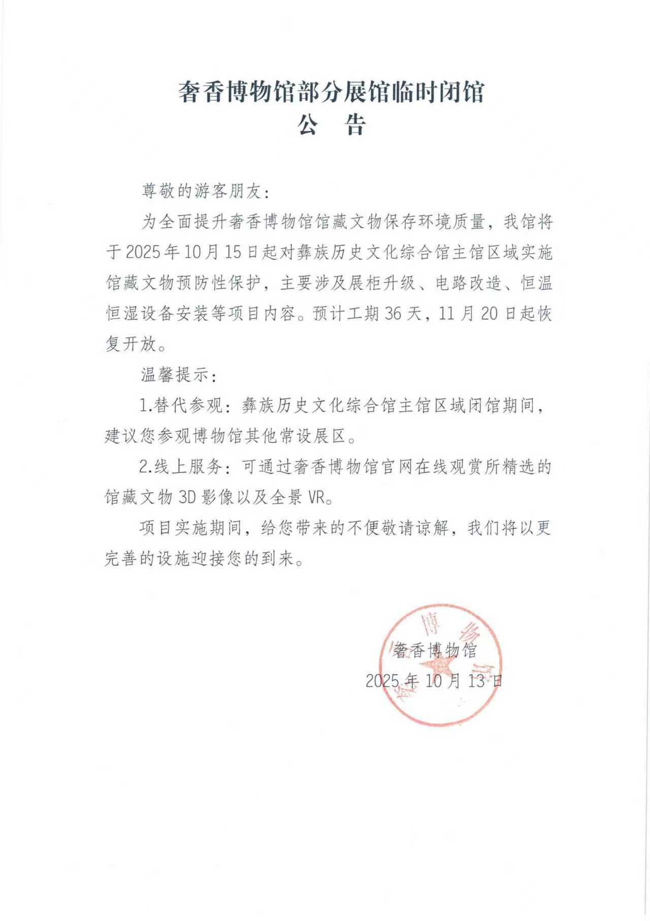 奢香博物馆部分展馆临时闭馆公告